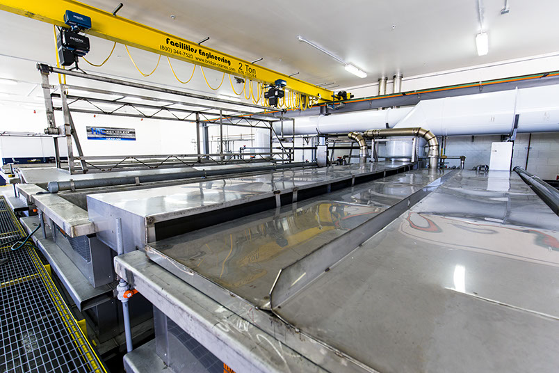 Maximum part size for chem mill: 18' length x 5' wide aluminum parts all temper.